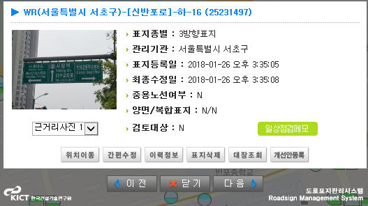 등록/관리 함은 물론 도로표지를 분석하여 위치 및 안내정보의